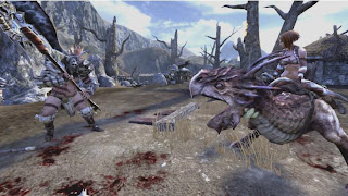I know you're asking yourself and probably yelling at the monitor, "Why is it called beast rider?!" I'll tell you why, because you ride beasts. Just like the one in the image above. On your father's death bed he informs you that you're the last of the great beast rider lineage and you must find and hatch you own beast to ride. He begins to educate you on the many beasts in the world that you can find and hatch. But no matter what you get stuck with the shitty armless dragon. You go on this long quest up a mountain where you have to fight goblins and dozens of men in thongs and when you reach the top you get your egg. The game takes a 180 degree turn and turns in to more of a "sim" game. You have to take care of the egg, by sitting on it to keep it warm and making sure it doesn't roll down a hill and break, or you get a F. Three hours in the game it finally hatches and you get this freakish baby dragon thing that you have to feed small rodents. You eventually take it in to the world and have it fight along with you, but watch out if a man in a thong cracks it on the skull it's, GAME OVER YOU ARE DEAD.